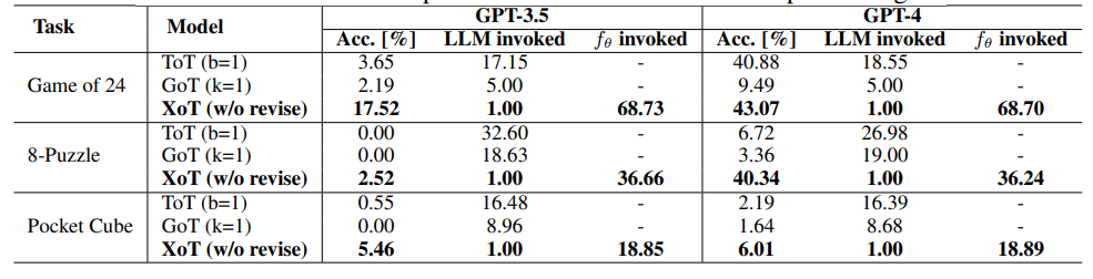 这些结果突出了XOT如何通过有效和灵活的提示释放llm解决复杂问题的潜力。
